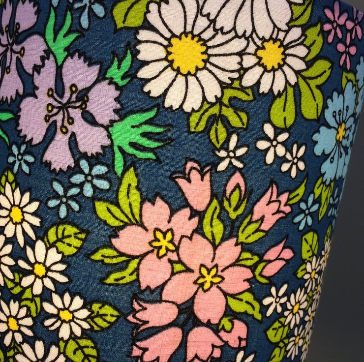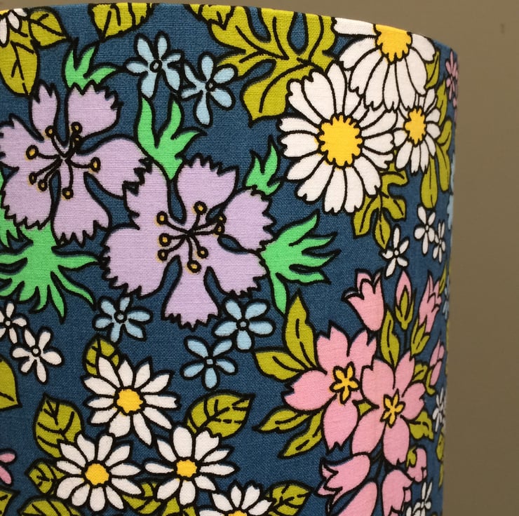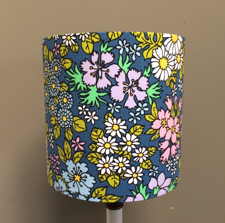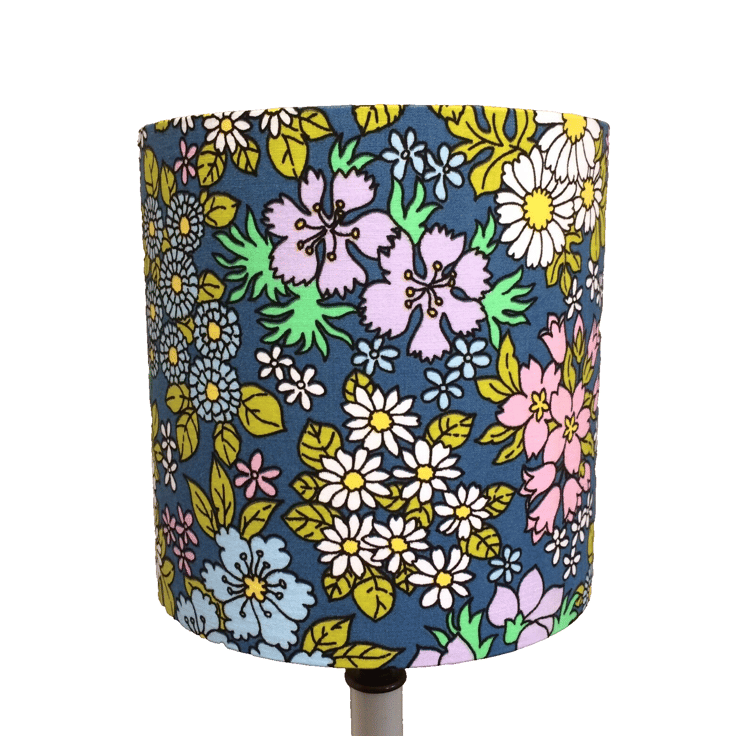 Pretty Pink Lilac Pastel Flowers Daisies on Blue 60s Vintage fabric Lampshade