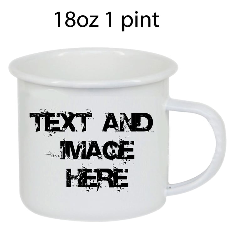 10oz Enamel Mug, Tin Mug White Rim Printed Both Sides