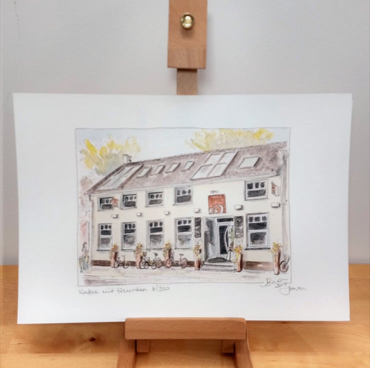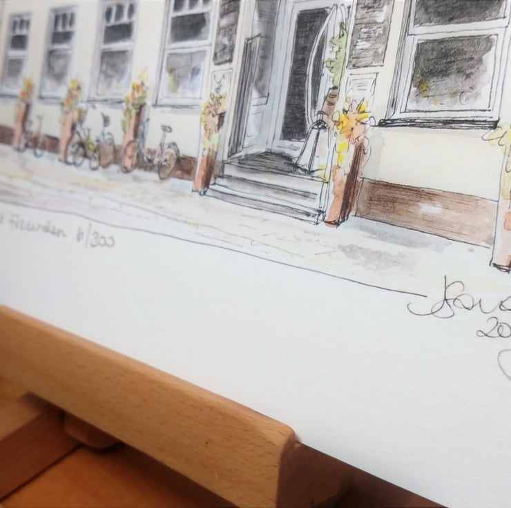 A limited edition Giclee print of 300, each print is individually titled, numbered and signed by myself. The original painting is created with pen and ink with watercolour.