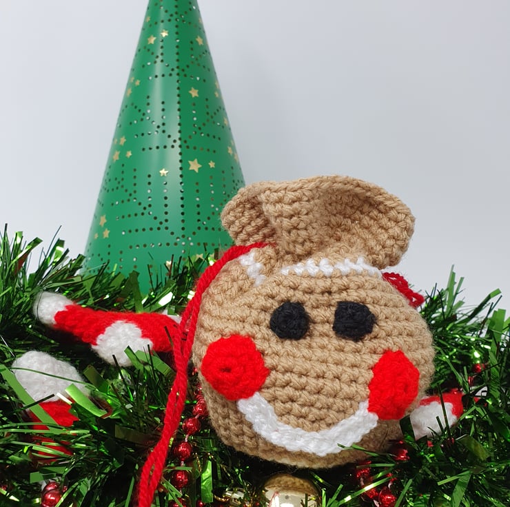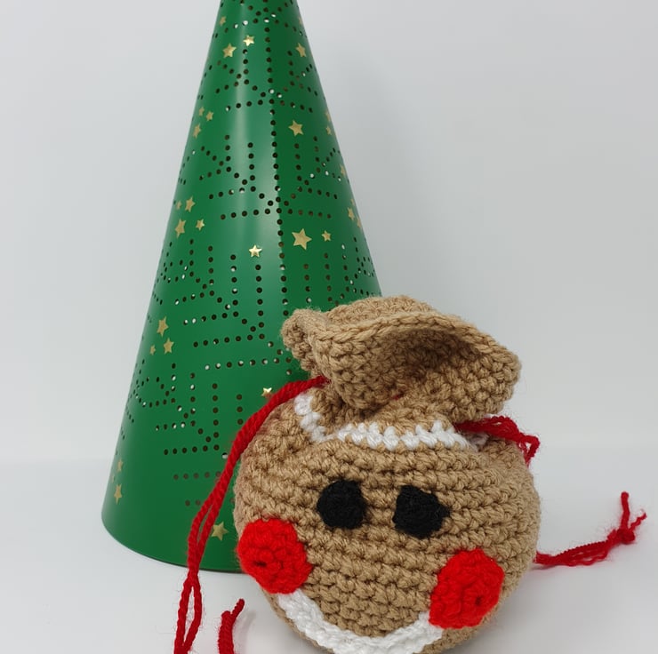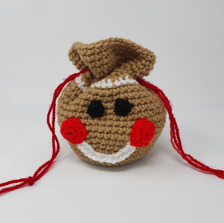 Drawstring Crochet Gift Bag - Gingerbread Man Design