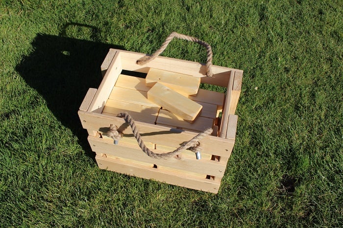 The initial tower stands at approximately 600mm built from 66 blocks of premier grade pine coated in exterior grade varnish, each block of approximate size 140mm x 42mm x 26mm. All the edges have been smoothed to remove all those sharp edges. The set includes a wooden storage / carrying crate and set of rules.