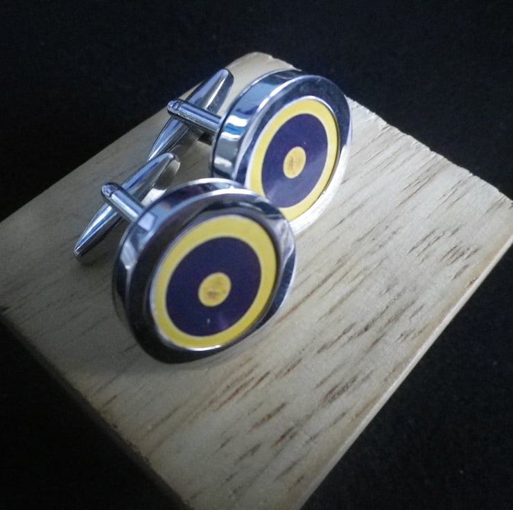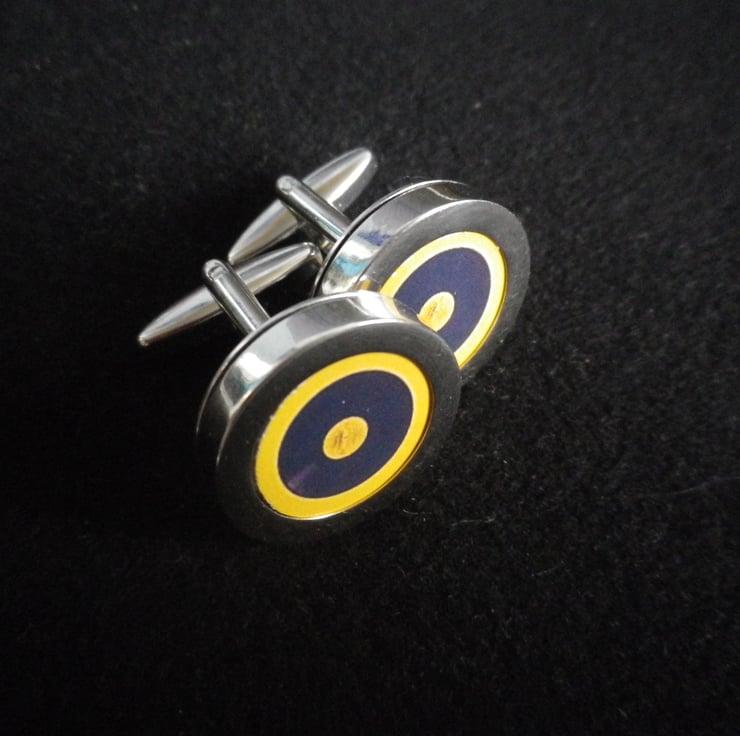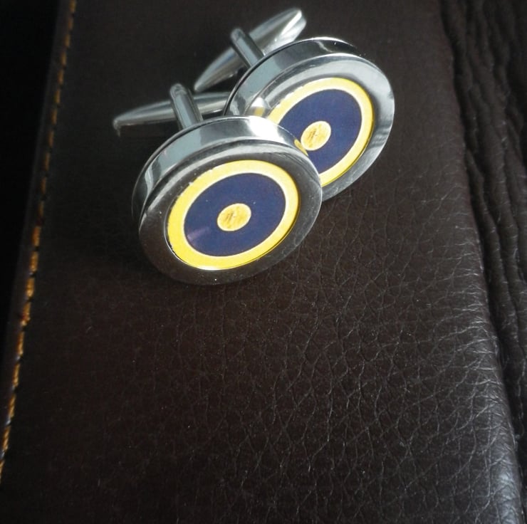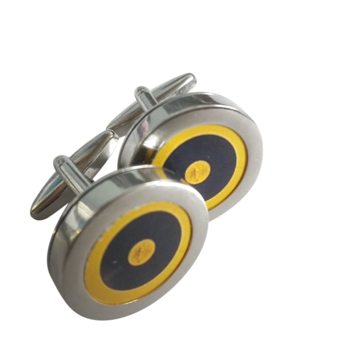 The cufflink sets have an even, smooth, highly polished silver finish, with a deep setting and a swivel action 'cigar' shaped shank for ease of use. Crafted from rhodium plated alloy the image has a 15mm ( 3/5" ) protective transparent film, plus you will receive these unique products in a neat presentation box, and we offer free shipping worldwide
