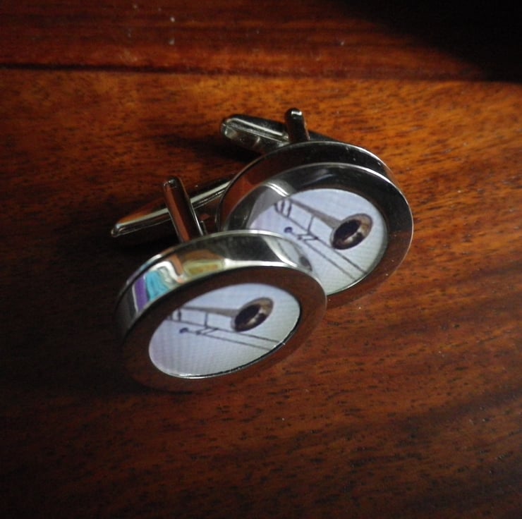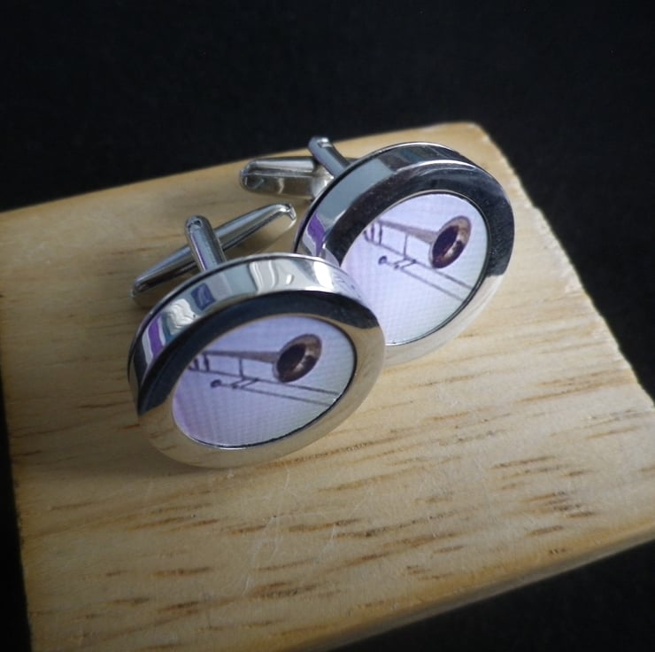 Slide trombone cufflinks, free shipping, gift wrapped, super image, Ref 1234