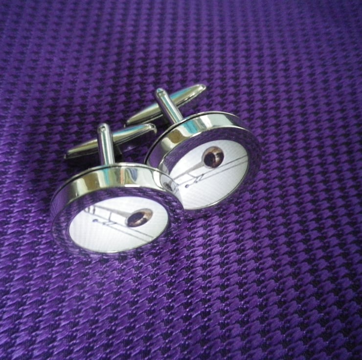 The cufflink sets have an even, smooth, highly polished silver finish, with a deep setting and a swivel action 'cigar' shaped shank for ease of use. Crafted from rhodium plated alloy the image has a 15mm ( 3/5" ) protective transparent film, plus you will receive these unique products in a neat presentation box, and we offer free shipping worldwide