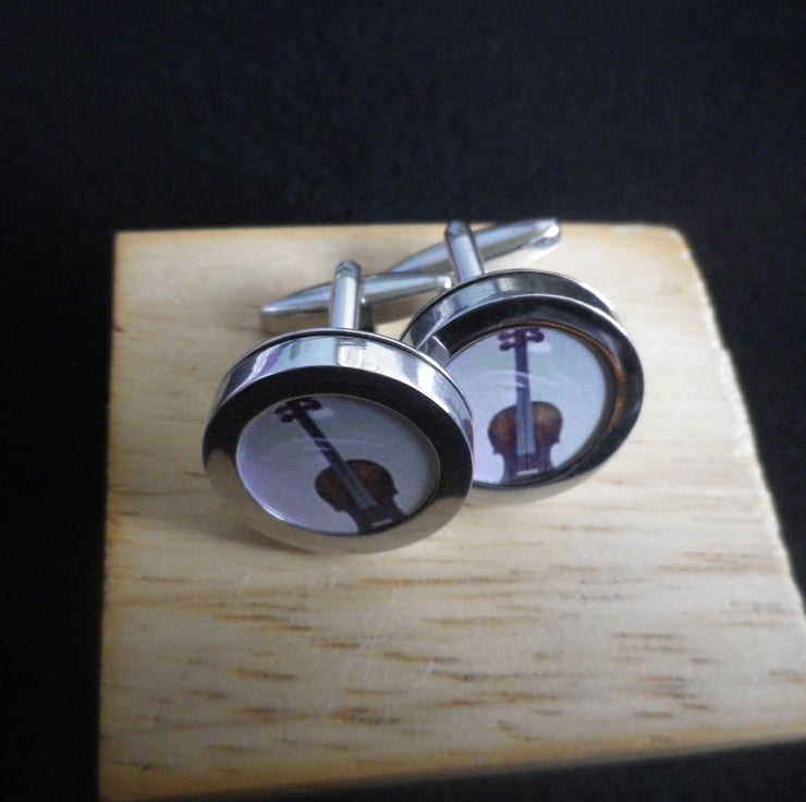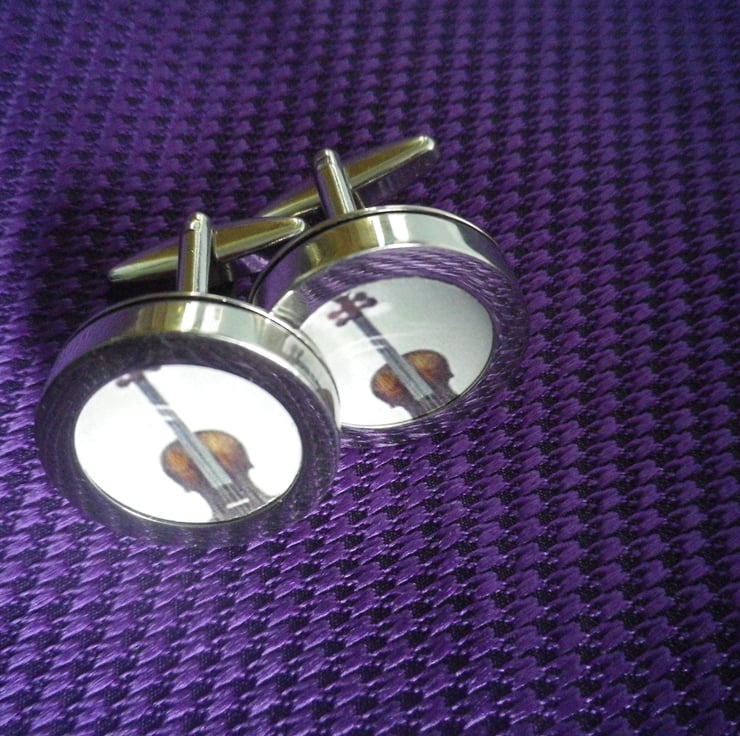 Classic violin cufflinks, free shipping, gift wrapped, beautiful image, Ref 1234