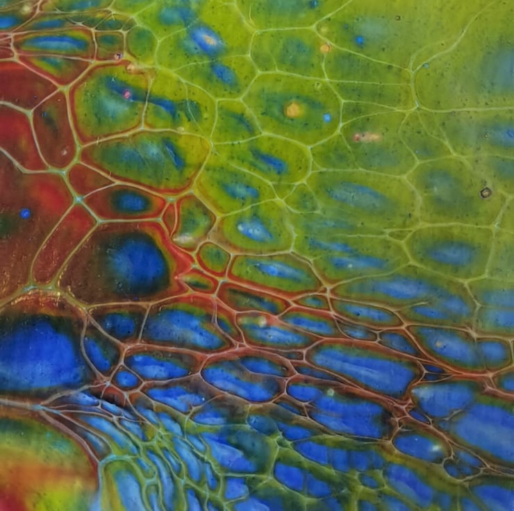 Original Abstract, Colorful Cells Acrylic Painting that was Hand Poured on Stretched Canvas - Wall Art, Perfect for Home or Office Decor.