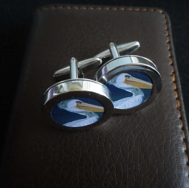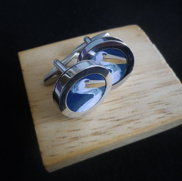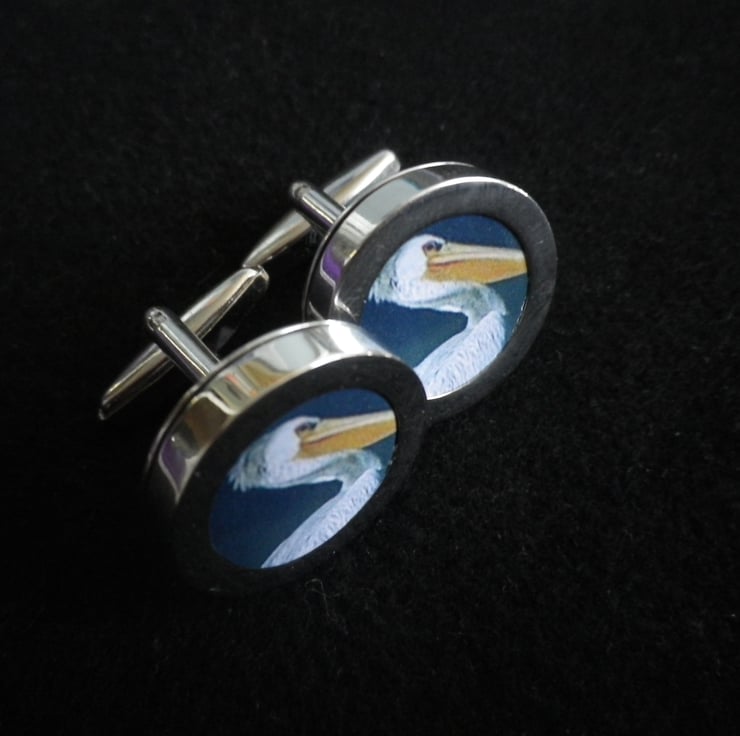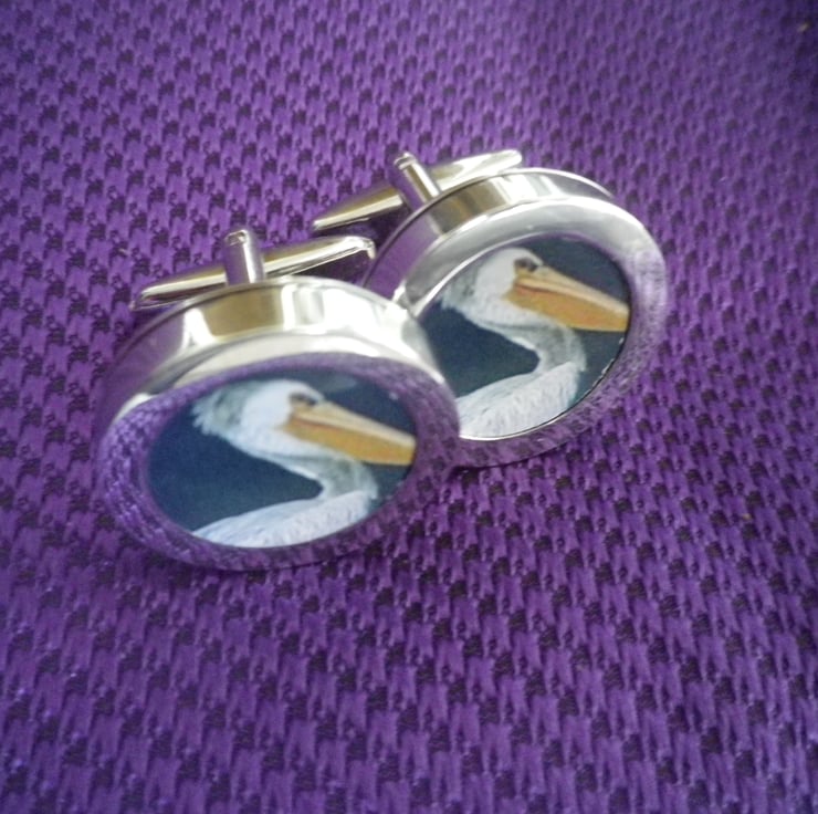 Pelican cufflinks,free shipping, gift wrapped, lovely depiction, Ref 5521
