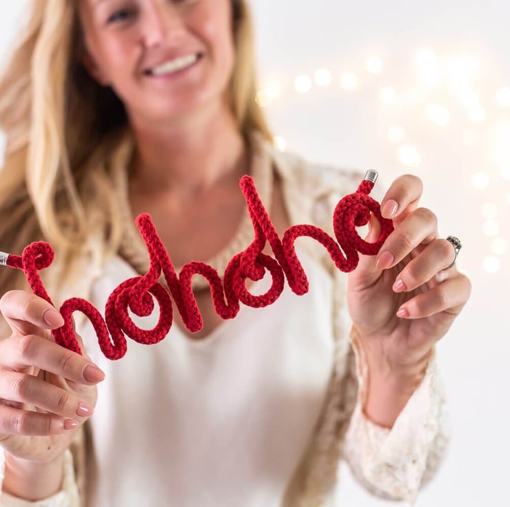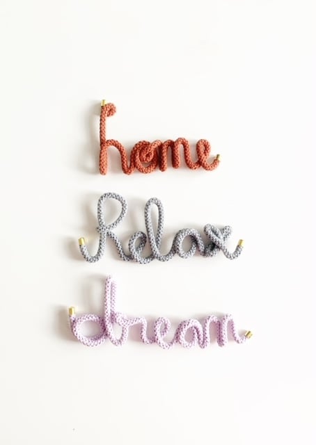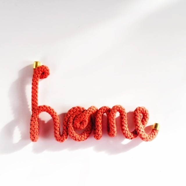 This knitted wire word is made to order using a knitted cord, threaded with aluminium wire.