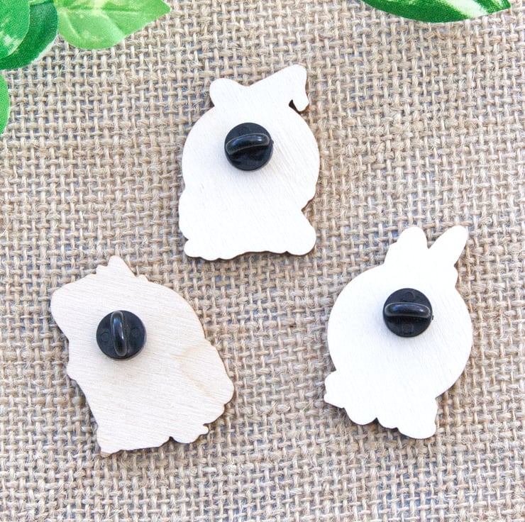 The design has been printed onto responsibly sourced European birch plywood and then spot glass has been used to give the pin a glossy appearance. They've then been laser cut to shape, so there might be a slight burnt wood smell, but that should pass in time.