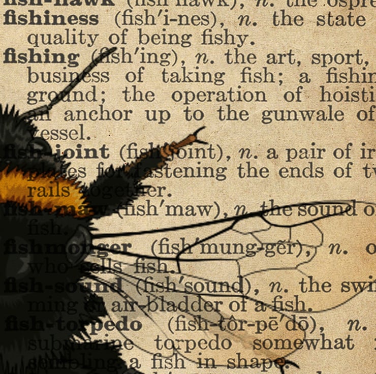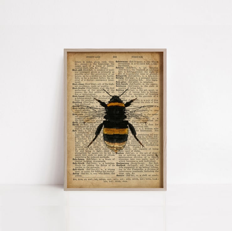 Bumble Bee on old dictionary page print.