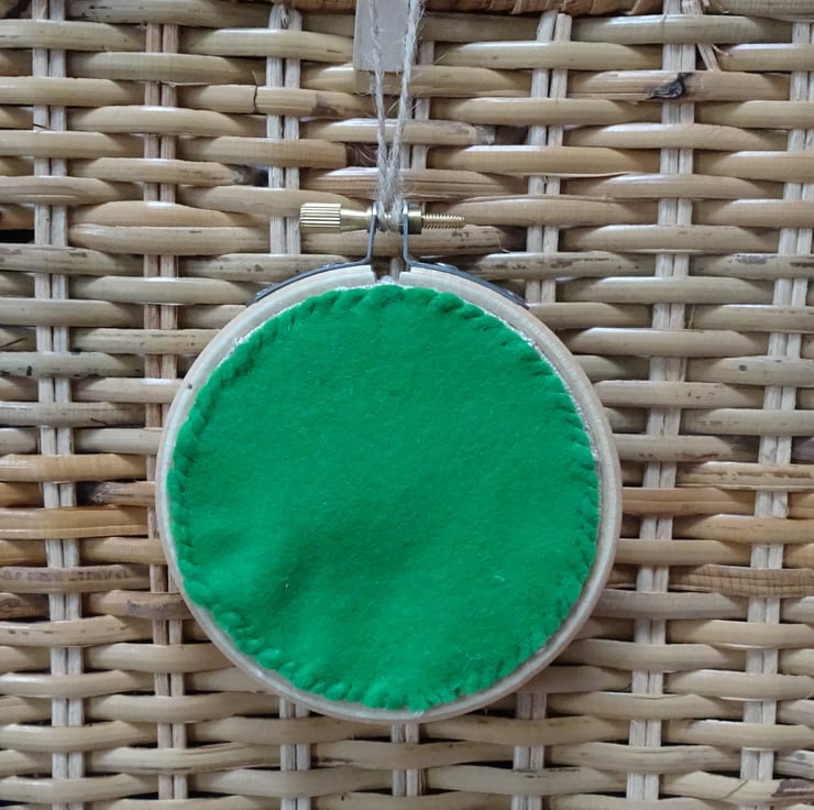 It is filled with wadding to give a lovely soft and tactile feel and hand stitched on the back with a circle of felt in a shade of green.