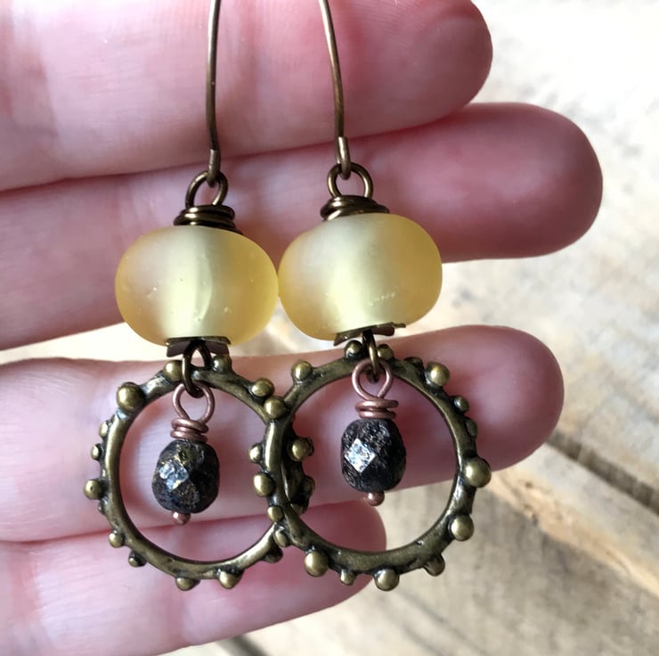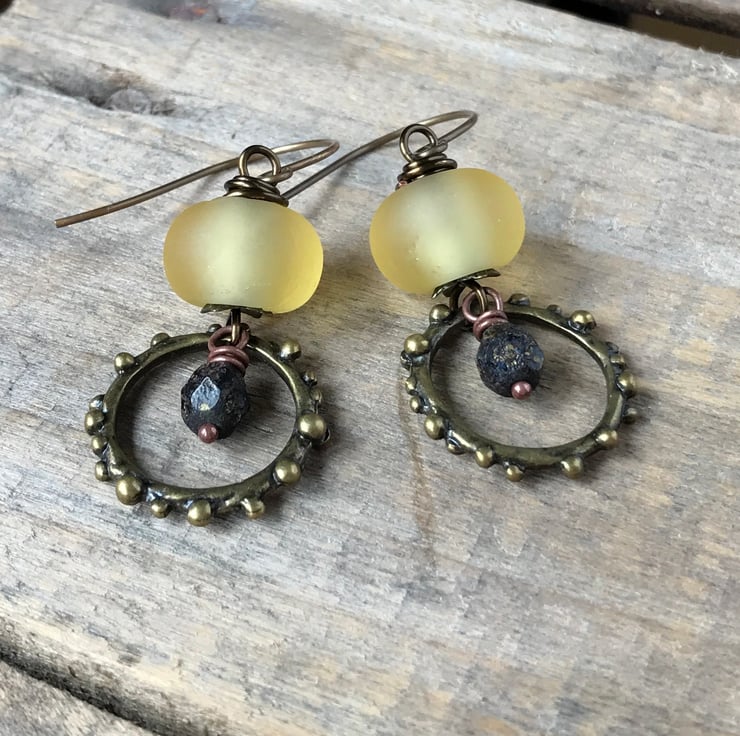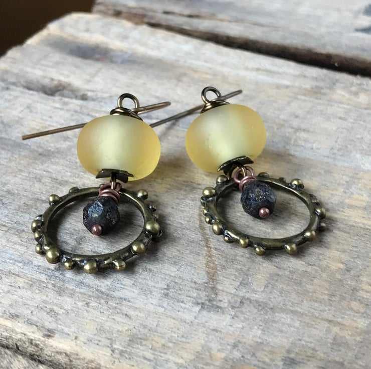 Bohemian Yellow & Black Earrings. Rustic Hoop Earrings. Lightweight Earrings