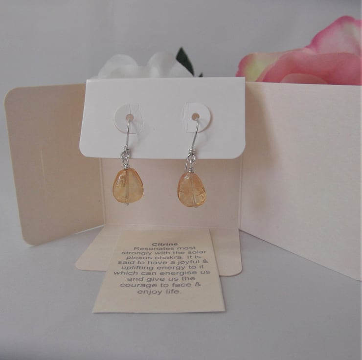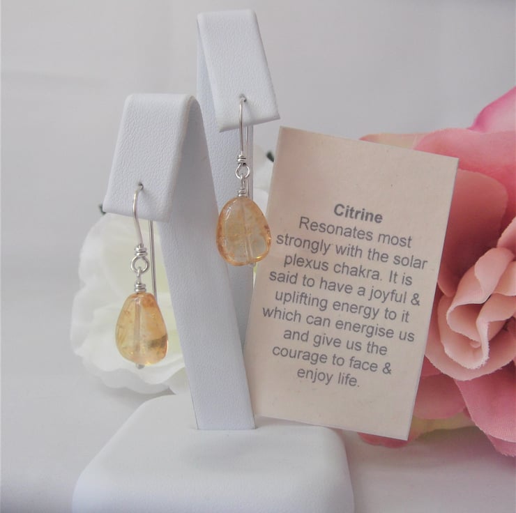 These dainty earrings have been handmade using Citrine tumble stones & sterling silver wire.