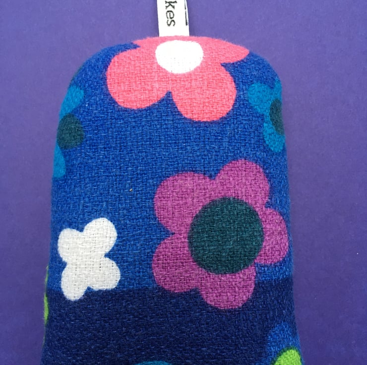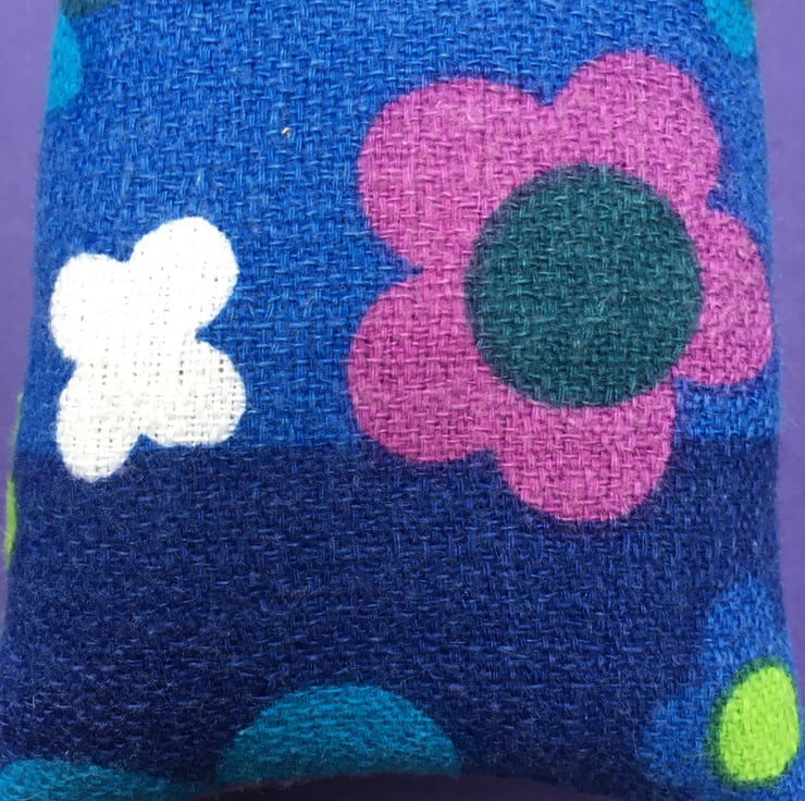 To make this lavender bag I have used a screen print of Eric, one of my little 1960’s wooden Viking men and original vintage 1960’s Daisy barkcloth fabric, which was once a table cloth that had seen better days.