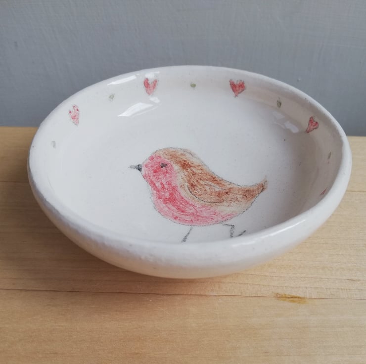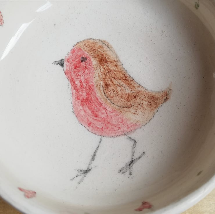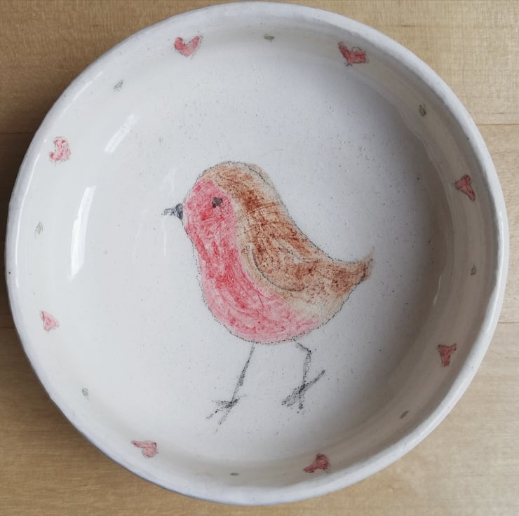 I wanted somewhere to put my used tea bags after making a cup of tea and thought a gardeners friend (Robin) would be a good image to paint and the little hearts make a good border.