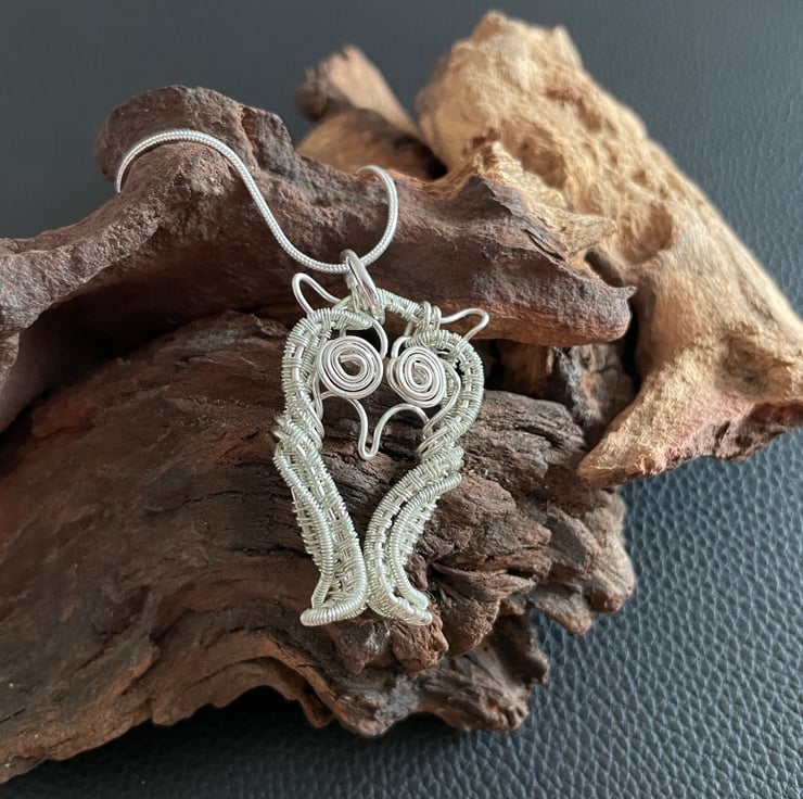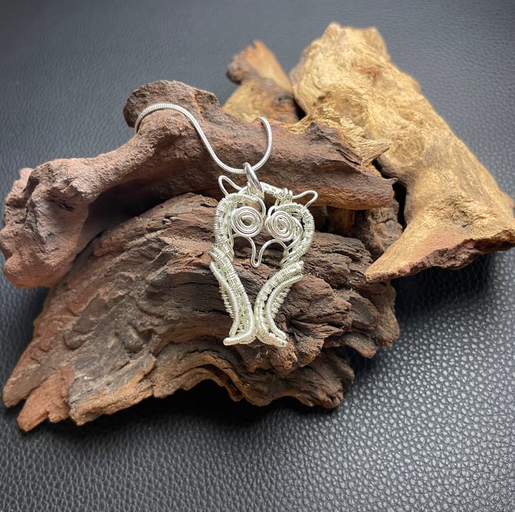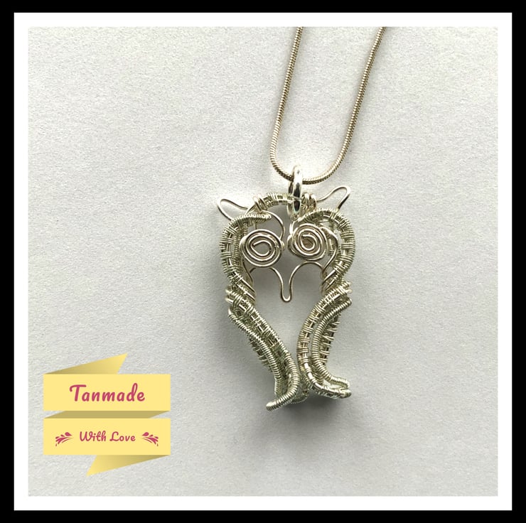 Created using a range of silver plated copper artistic wire. The wire has an ultra thin coating that will inhibit tarnishing for longer. This piece was created from a paid tutorial by Nicole Hanna Jewlry. It would make a wonderful gift for anyone who loves owls, and appreciates something handmade and unique. There is a choice of chains to choose from.