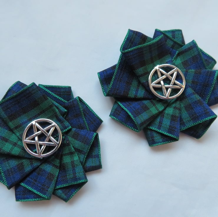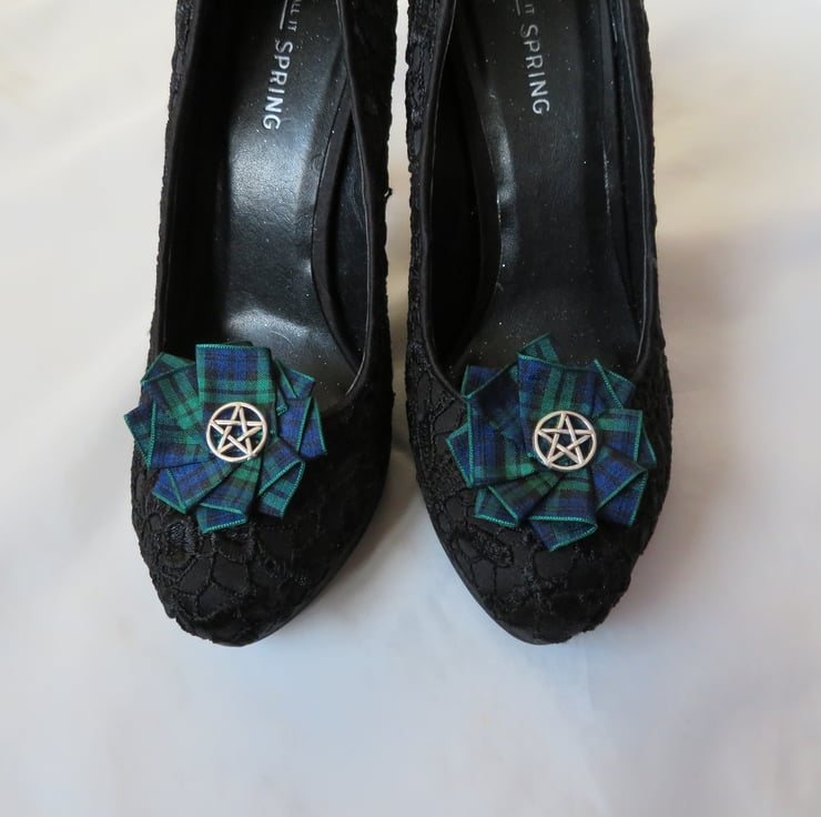 These pretty Black Watch Tartan Pentagram Shoe Clips are ready made.