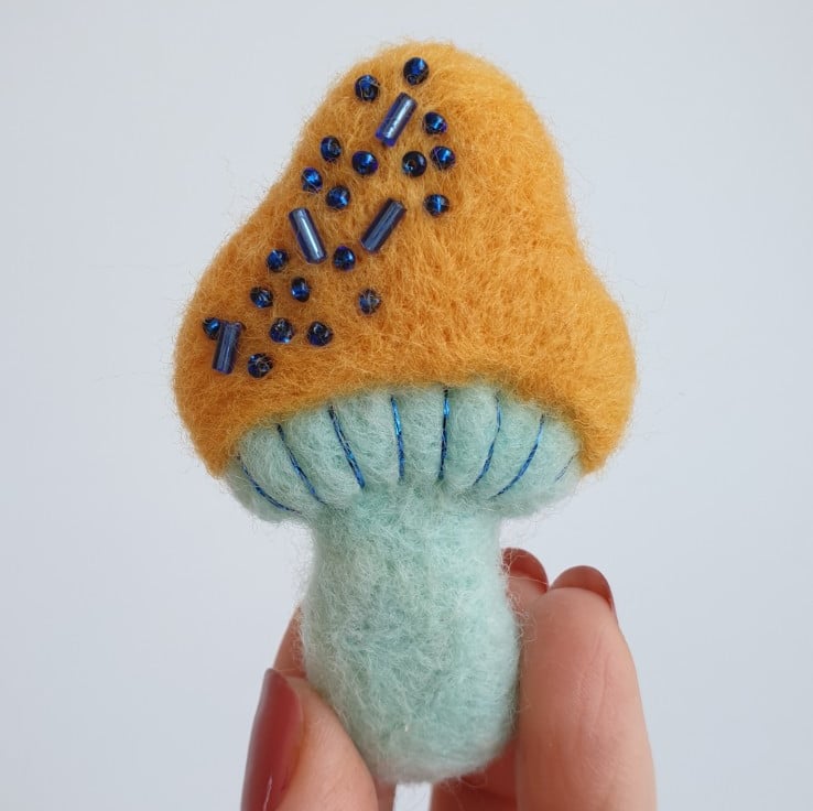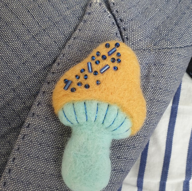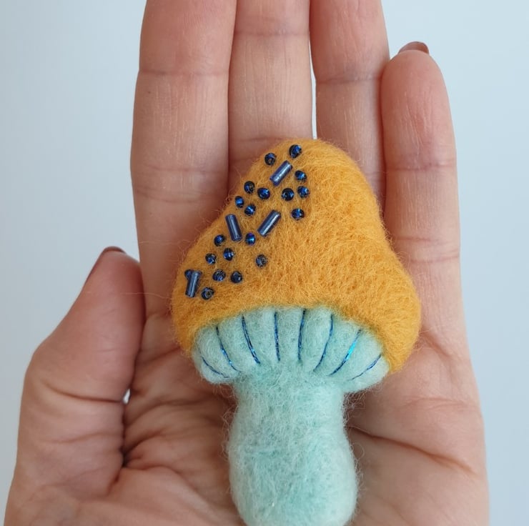 This soft and lightweight brooch is made of pure merino wool in needle felted technique and decorated with Japanese seed beads.