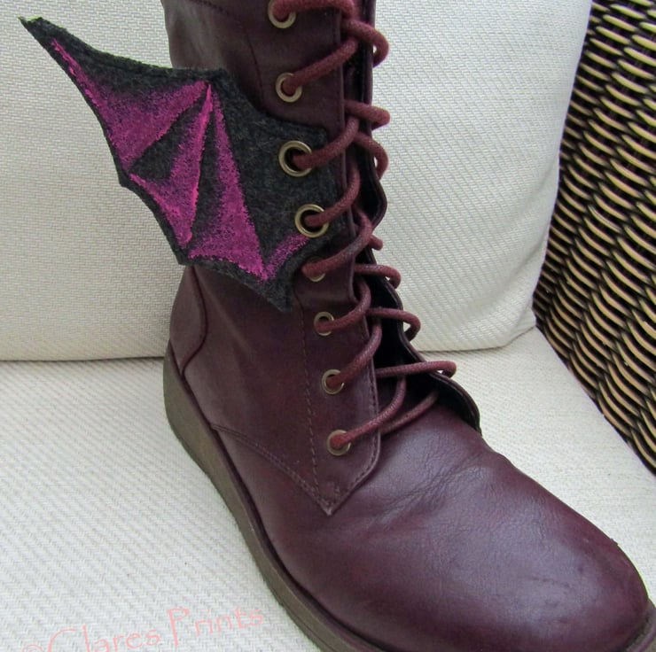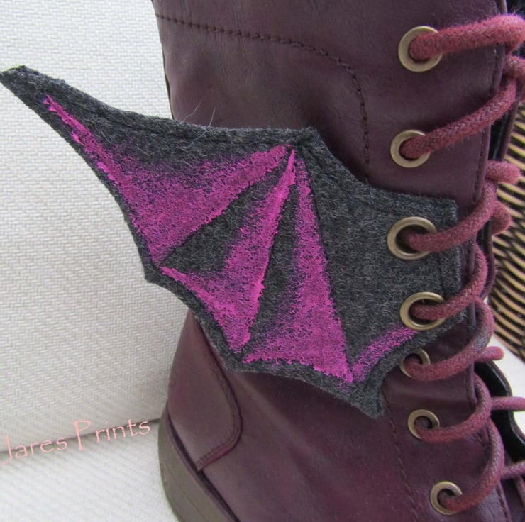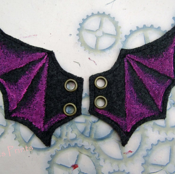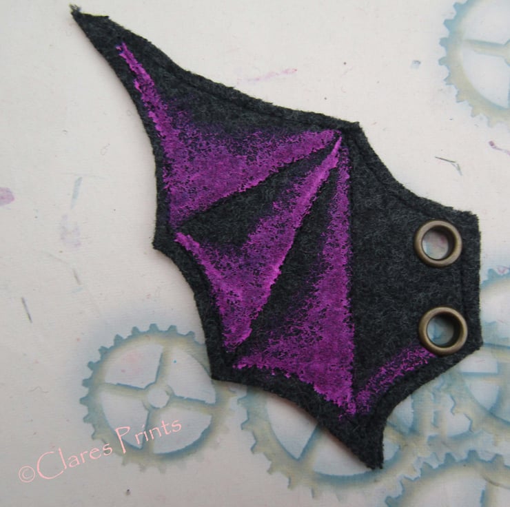 Made from 100% wool felt with two antique brass eyelets on each wing so can be threaded onto boots, corsets etc.