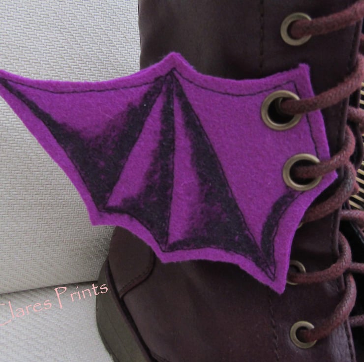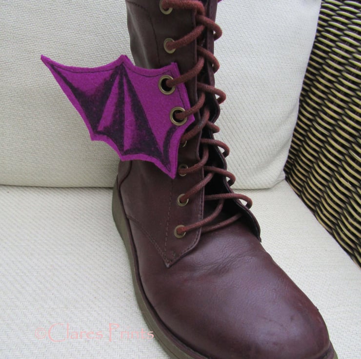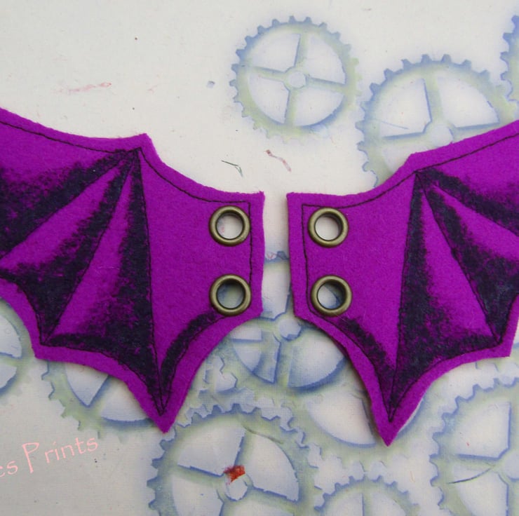 Made from 100% wool felt with two antique brass eyelets on each wing so can be threaded onto boots, corsets etc.