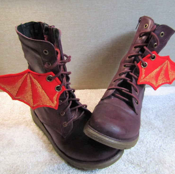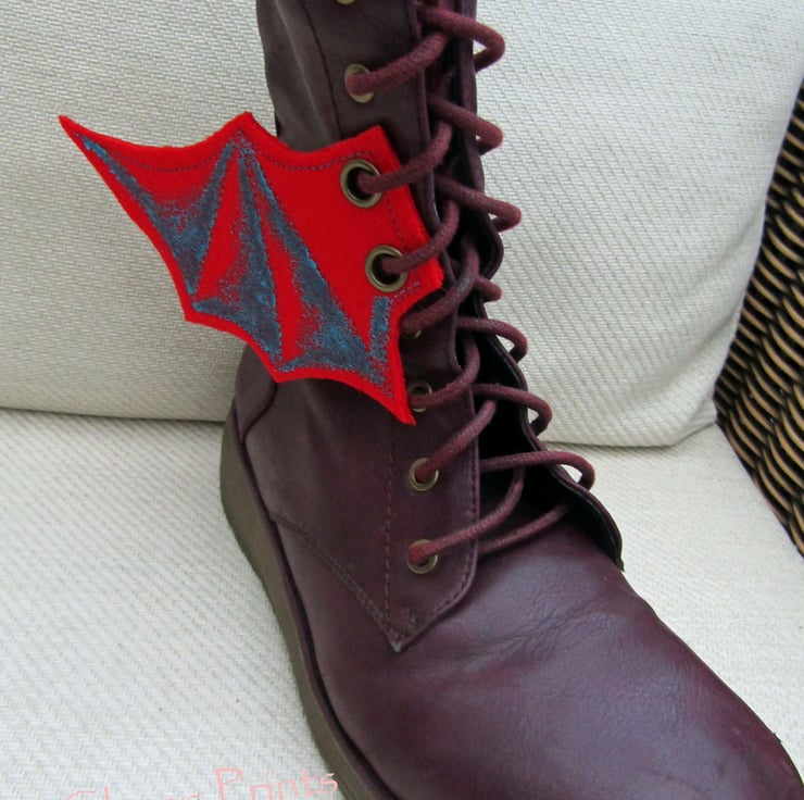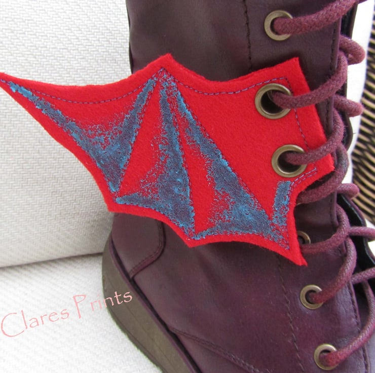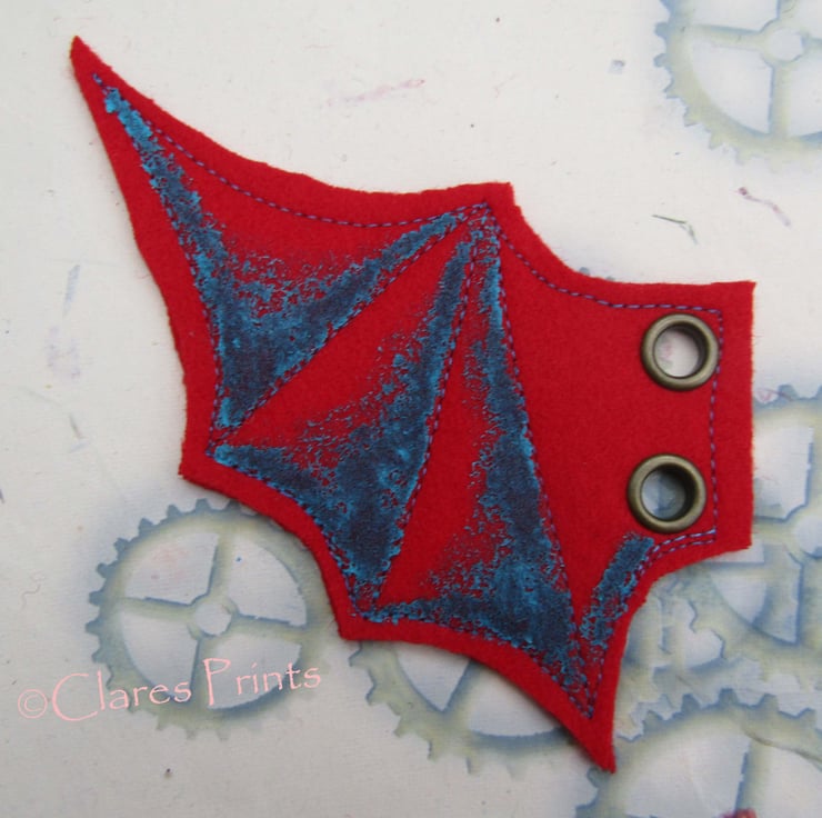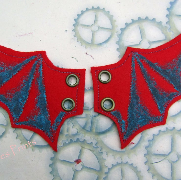 Made from 100% wool felt with two antique brass eyelets on each wing so can be threaded onto boots, corsets etc.