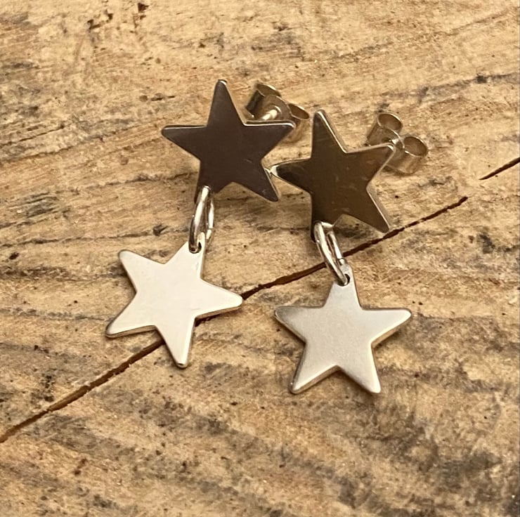 Light weight silver drop earrings with a 925 solid silver star motif.