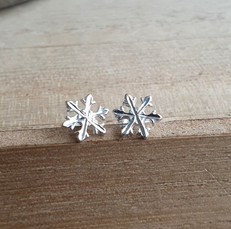 These pretty little sterling silver snowflake studs are handmade from sterling silver solderable accents to which I've attached sterling ear posts and butterfly backs. They have a brightly polished finish and sparkle beautifully when they catch the light.
