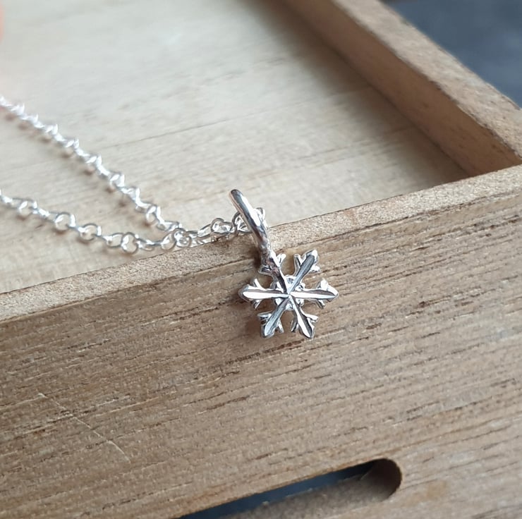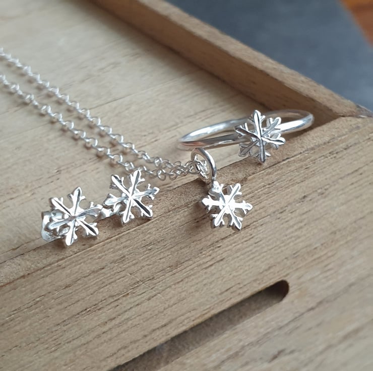 A matching snowflake pendant and stacking ring are also available as shown in the last photos. Find them in the necklace and ring sections of my shop.