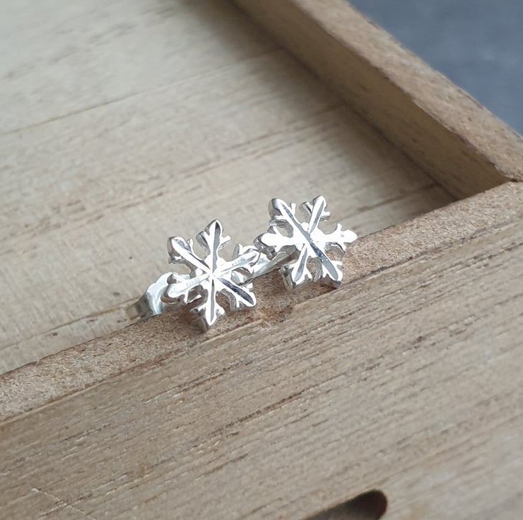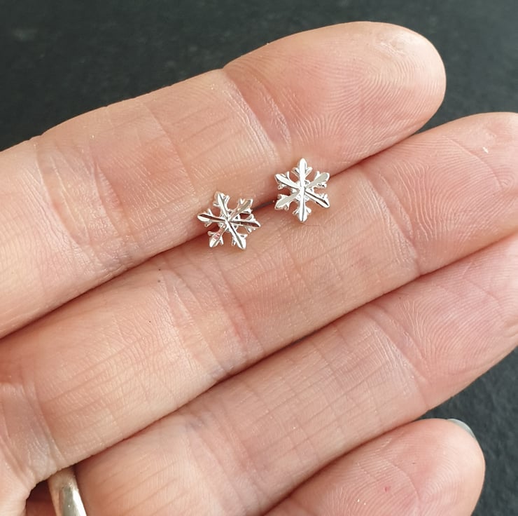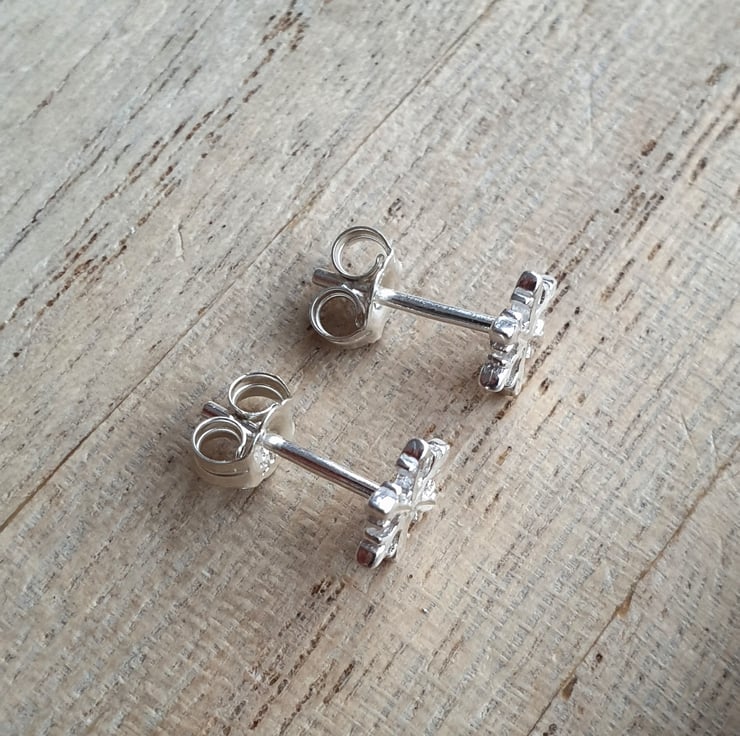 These pretty little sterling silver snowflake studs are handmade from sterling silver solderable accents to which I've attached sterling ear posts and butterfly backs. They have a brightly polished finish and sparkle beautifully when they catch the light.