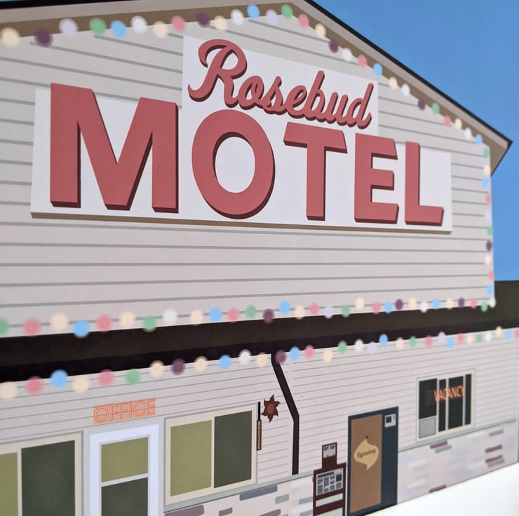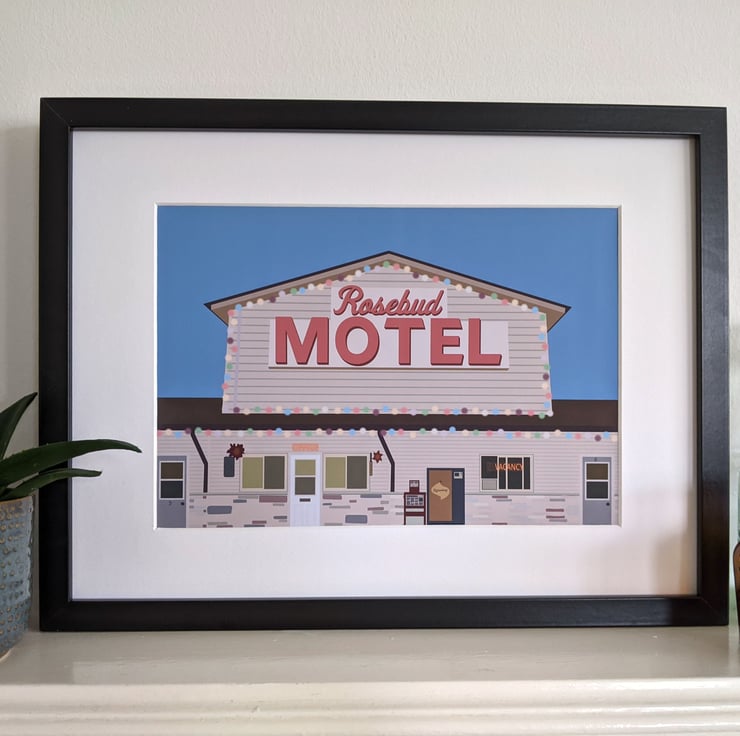 This Rosebud Motel print is inspired by the popular show, Schitt's Creek, and is a perfect gift for any fan of the show. Printed on 220gsm matte photo card, this A3 print comes in a board backed envelope without cellophane.