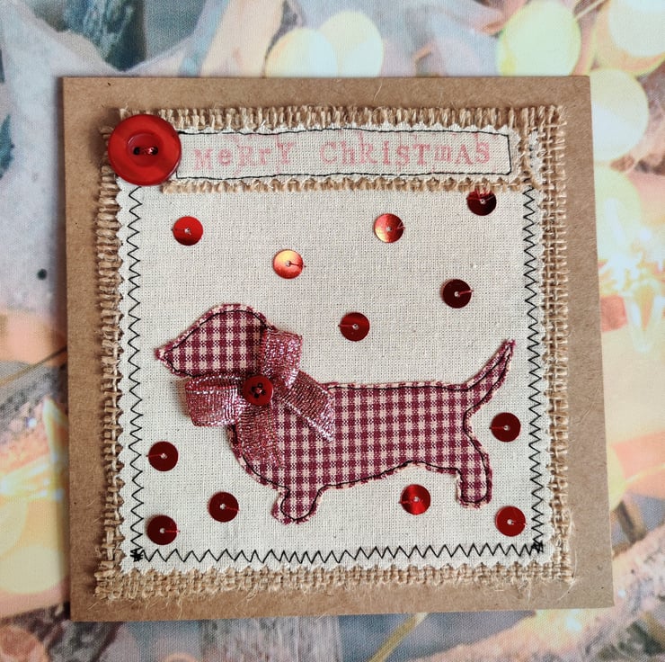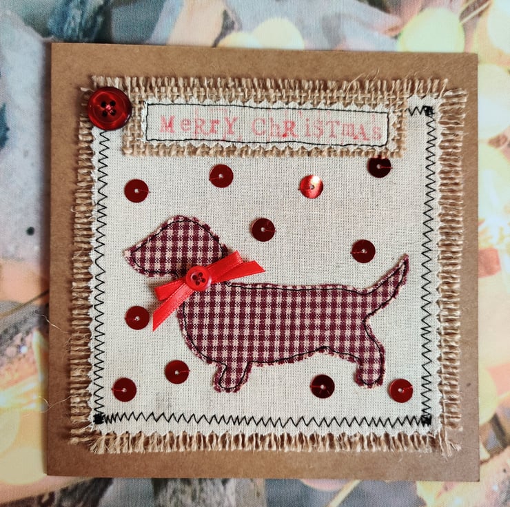 Unique, handmade appliquéd fabric doggy Dachshund cards