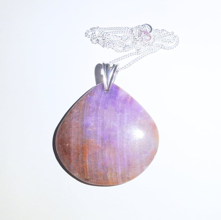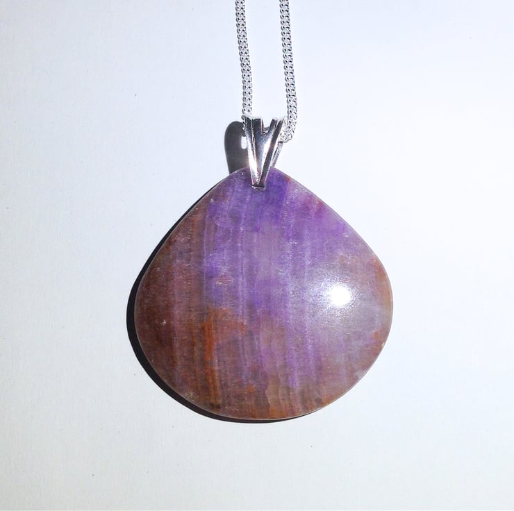 This beautiful pendant includes a large purple heather coloured agate gemstone pendant hung from a sterling silver bail on an 18 inch 1.5 mm sterling silver curb chain.