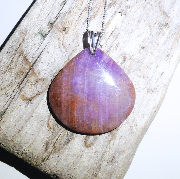 Large Purple Heather Agate Gemstone Sterling Silver Pendant (NKGSCNPP1)