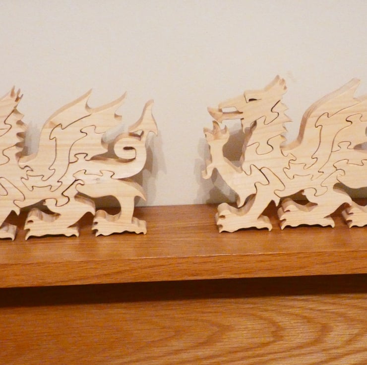 These 2 unusual wooden Welsh Dragon Jigsaw Puzzles, have been upcycled from reclaimed wood. The dragons will make a lovely table centerpiece or ornament. They will make perfect gifts for a number of occasions such as a housewarming or birthday present.