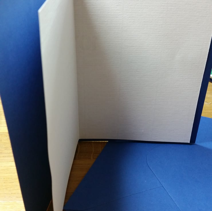 Printed with gold oil based ink on white 220gsm card then fixed to a dark blue 220gsm gift card lined with Conqueror laid paper for your message. Comes with a matching dark blue envelope.