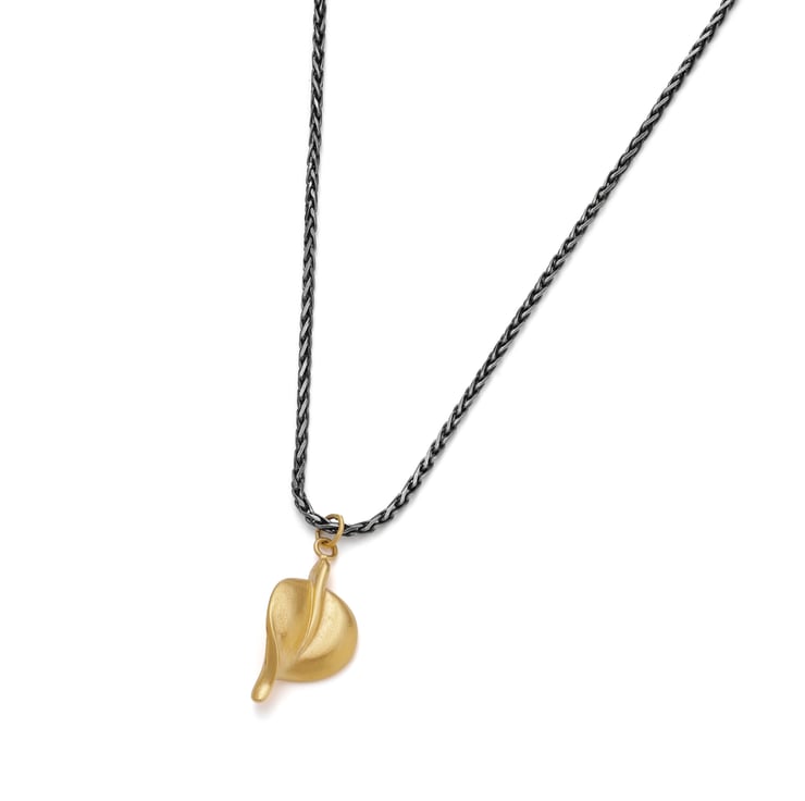 A solid sterling silver vermeil pendant on an oxidised spiga chain.