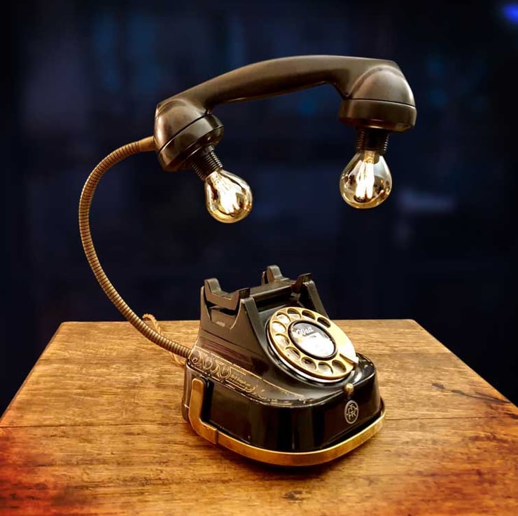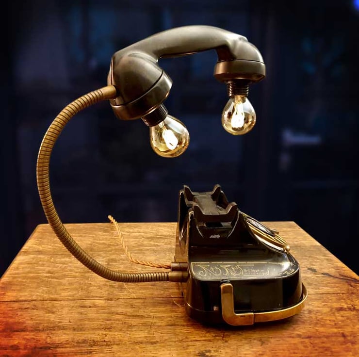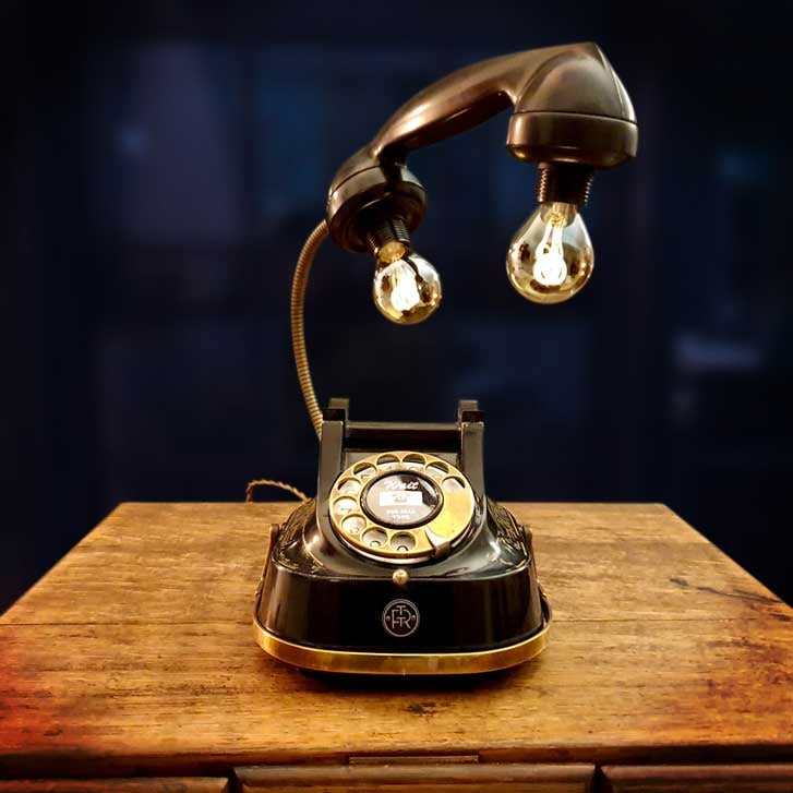 This old telephone has been stripped, cleaned, and polished to remove decades of dirt and grime, and has two vintage style Edison LED lights with old style spiral filaments producing a lovely warm glow. The telephone lamp also has an antique metal style flexible gooseneck arm so that the handset can be repositioned.