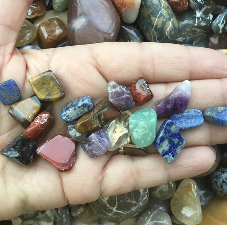 As mentioned previously, not all the stones included are officially gemstones, but pretty none the less, this selection does include, tigers eye, amethyst, red Jasper, agate, sodalite, adventurine and lapis.