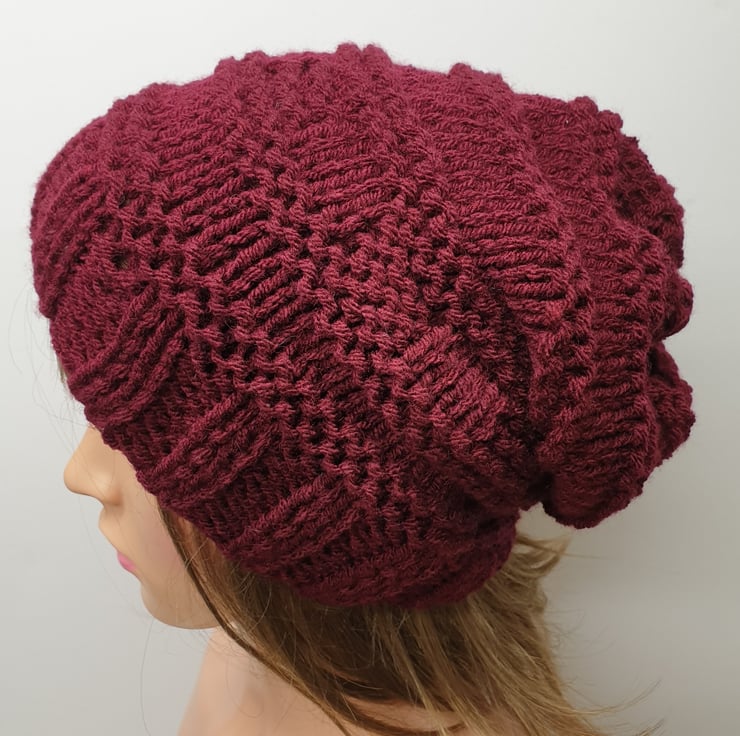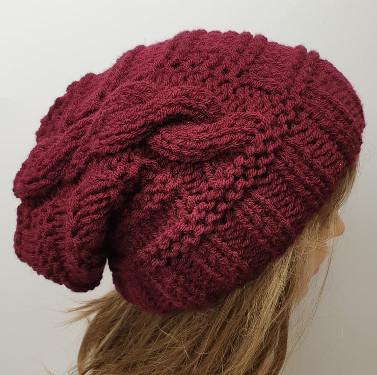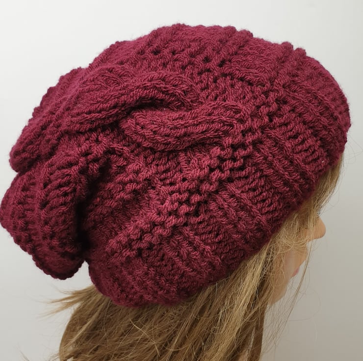 Hand knitted women slouchy beanie hat.
