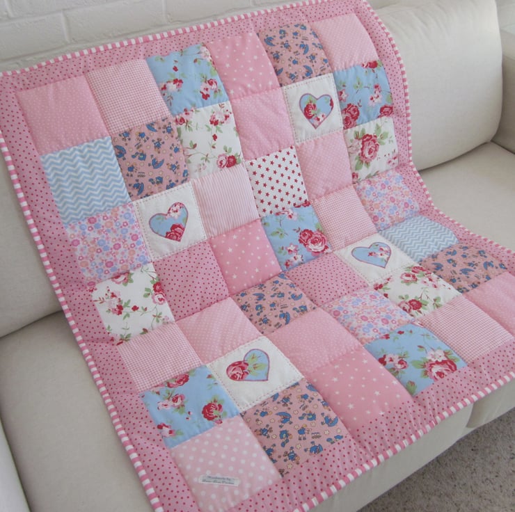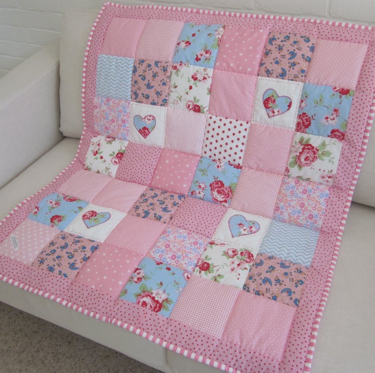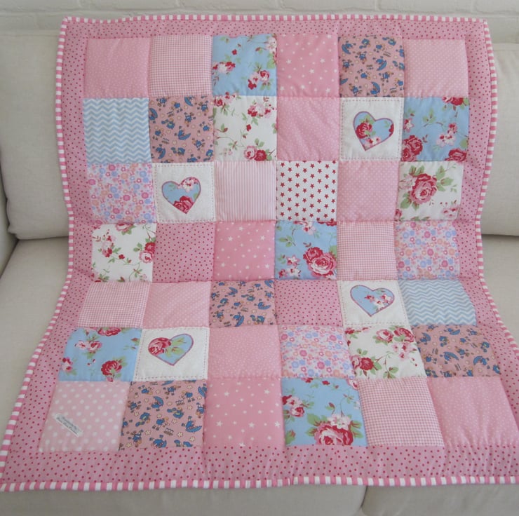 A traditionally made quilt - 33 1/2" x 39" - ( 85cm x 99cm ) made from 100% cotton fabric - HAND QUILTED AND HAND FINISHED .