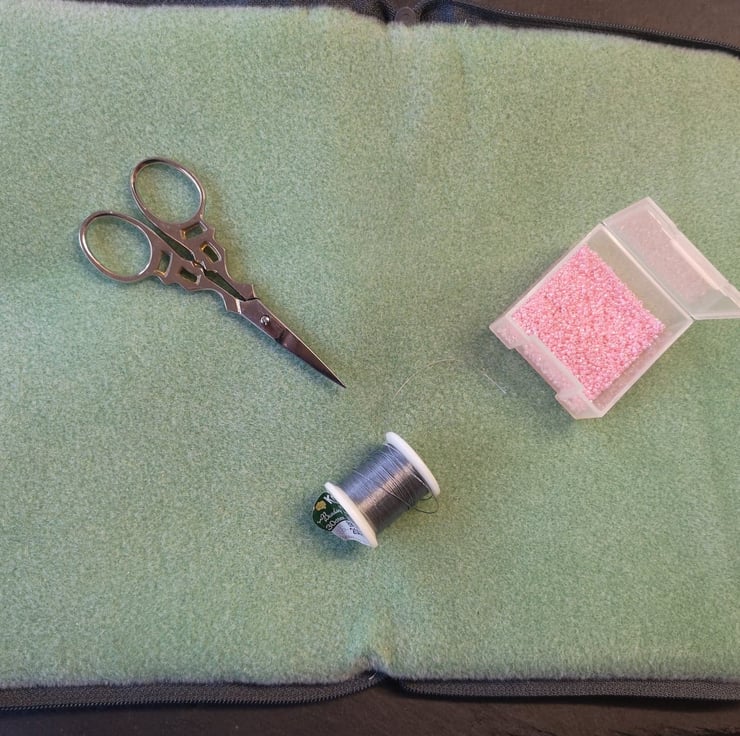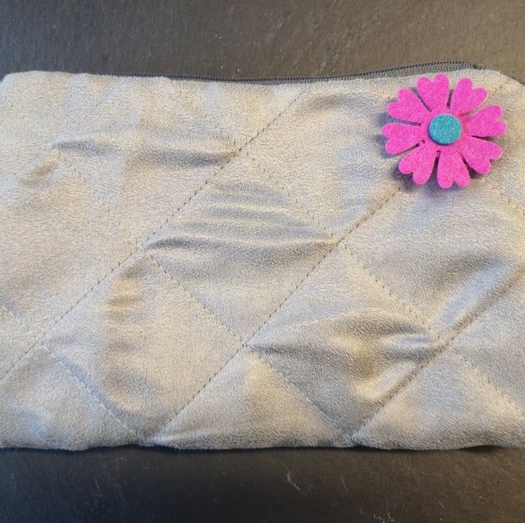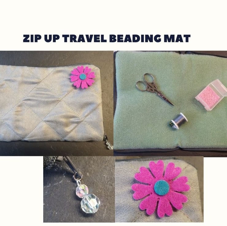 Travel zip up beading mat £9.95 with Grey Faux Suede fabric with detachable flower embellishment (brooch). Ideal for keeping your projects neat and tidy, whether its crafting or beading.