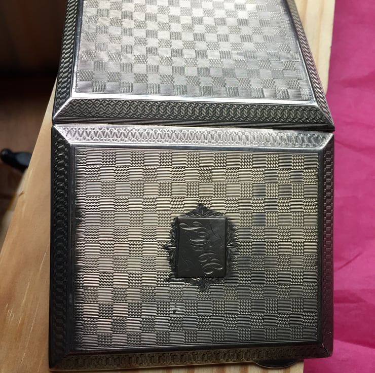 This necklace was made from quite a rare 1925 Birmingham silver Art Deco cigarette case. It measures approximately 2.9cm by 2.8cm. It retains the gold colour lining on the reverse. It comes with an 18 inch silver chain.