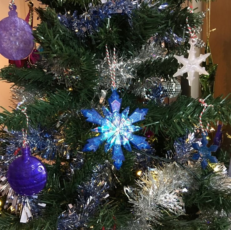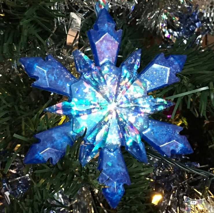 I love making snowflakes and wanted to make a super sparkly showstopping snowflake Christmas tree decoration and this glorious blue chunky snowflake certainly fits this description and will look stunning on your tree.
