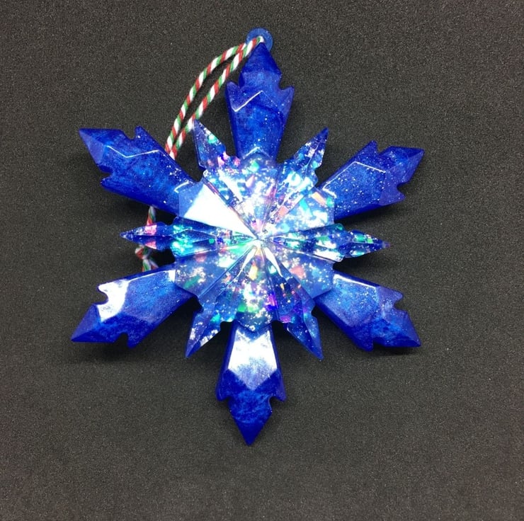 Luxury large blue sparkly snowflake Christmas decoration. Made to order.