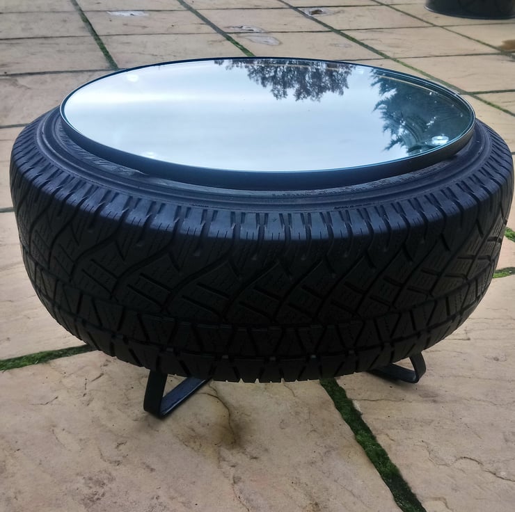 We love upcycling reclaimed car parts into new, exciting pieces of furniture and a coffee table seemed like the perfect transformation for this car tyre.