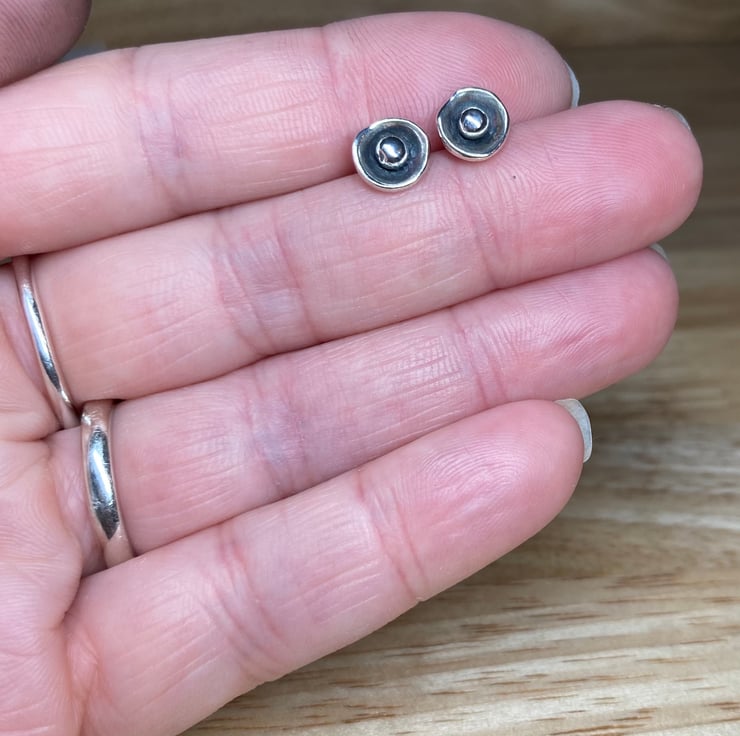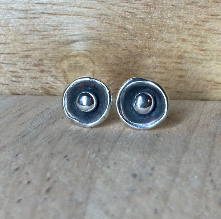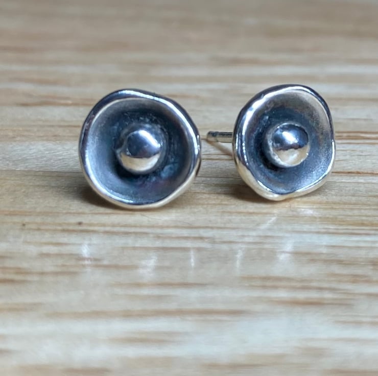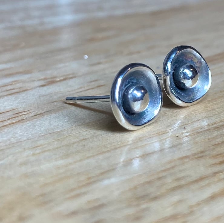 Gorgeous handmade domed shaped silver stud earrings with recycled silver ball centre