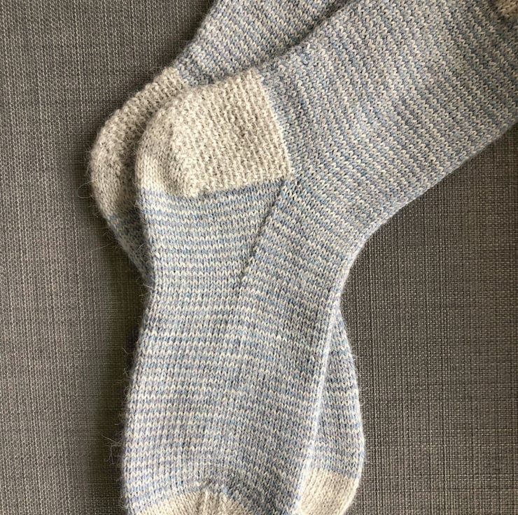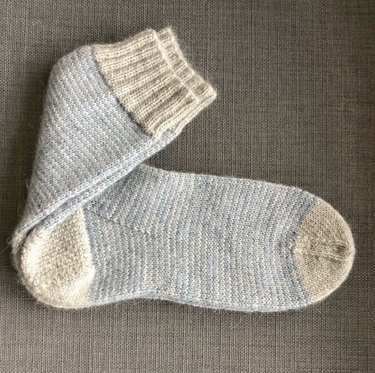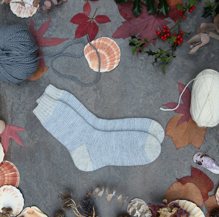 These soft socks in delicate grey-blue thin stripes will keep you warm and cozy, or can make a great gift for someone.