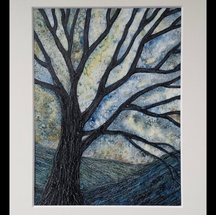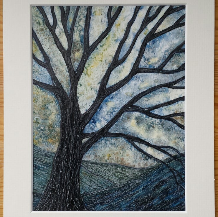 Winter Moodiness is an imaginative and expressive original painting in the Ness Series. I've used texture and colour to create atmosphere and mood. It will be supplied mounted and framed.