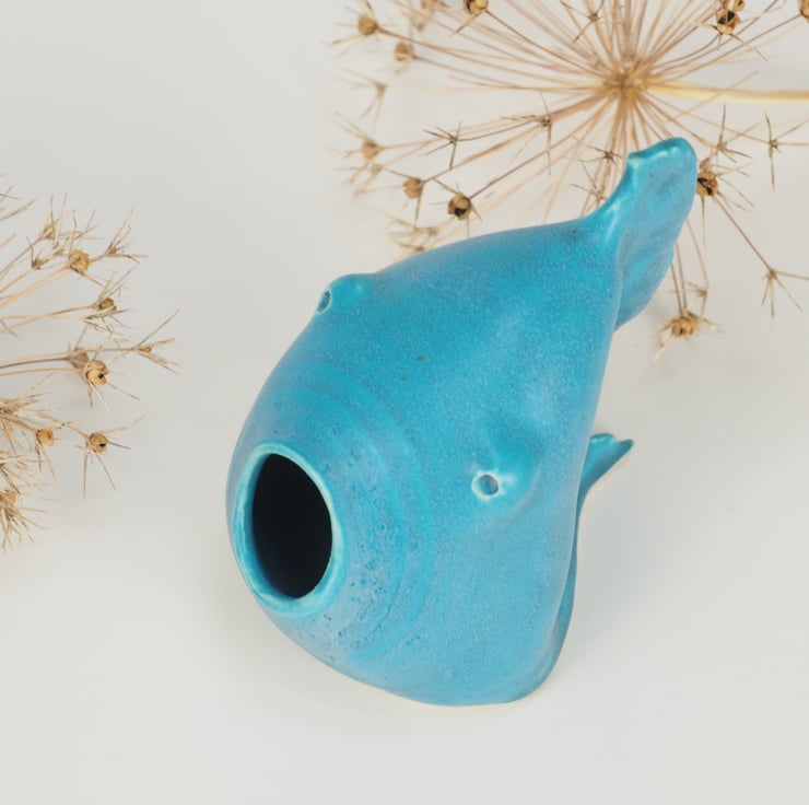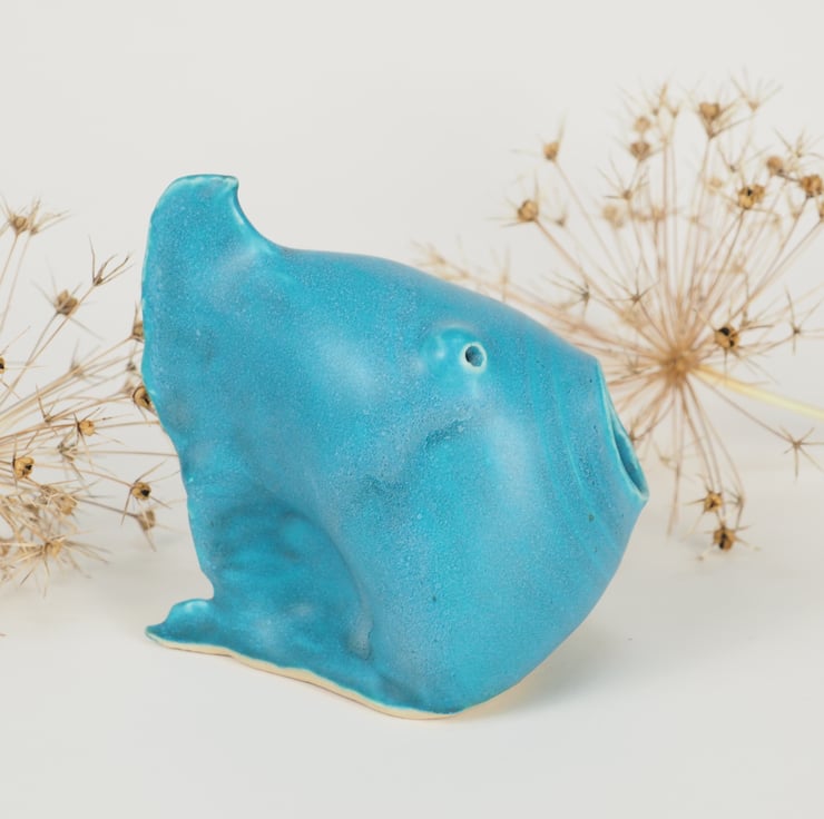 I love making these little fish. It is great fun watching their expressions and personality emerge from the clay. Each one is truly unique. I make them by throwing on the wheel and then alter the shape while it is still wet - the wetter the clay, the more emotional the fish tend to be ! Finishing touches like piercing the eyes come later when things have firmed up a bit.