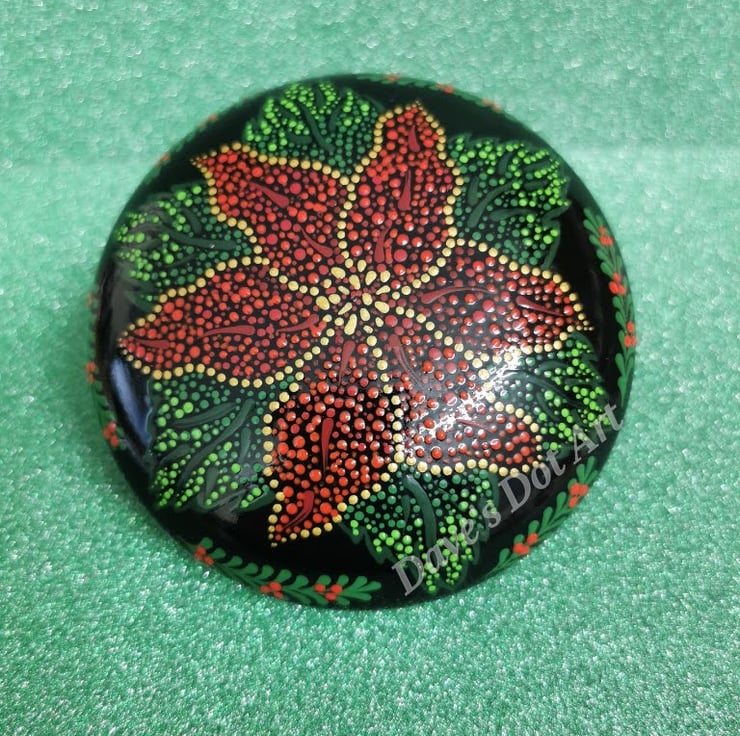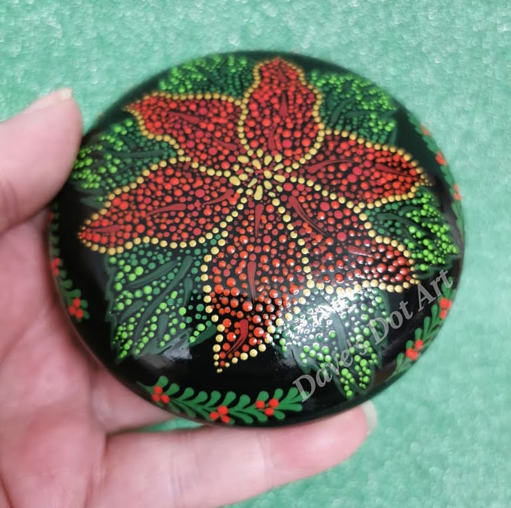 Dot Painted Poinsettia Stone